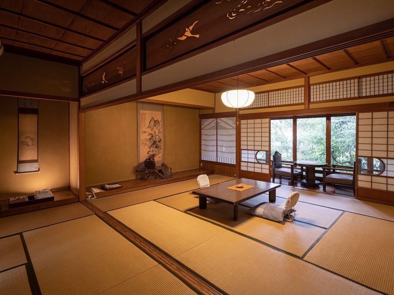 美しい日本庭園と夜のライトアップが有名で、温泉街の情緒を感じられる宿です。
